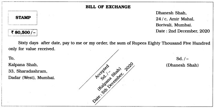 Prepare a format Bill of Exchange with imaginary Drawer, Drawee, Address, Amount, Dates.