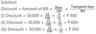 (b) Vikram’s acceptance to Narendra ₹ 6,000 retired one month before the due date at rebate of 12% p.a.