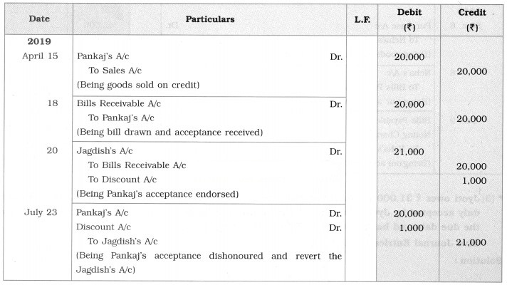 Pankaj purchased goods of ₹ 20,000 from Omprakash on credit on 15th April, 2019. Omprakash draws After Sight bill for the amount due on Pankaj for 3 months which was accepted by Pankaj on 18th April, 2019. On 20th April, 2019 Omprakash endorsed the bill to his creditor Jagdish in full settlement of his amount ₹ 21,000. On the due date the bill was dishonoured by Pankaj.