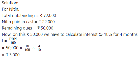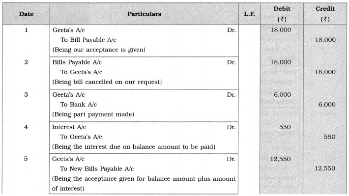 (b) Nitin renewed his acceptance for ₹ 22,200 by paying ₹ 2,200 in cash along with interest on balance amount at 10% and accepted a fresh bill for the balance for 3 months.