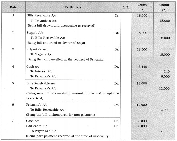 (c) Dhanshri who had accepted Bharti’s bill for ₹ 17,500 was declared insolvent and only 40% of the amount due could be recovered from her estate.