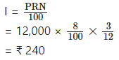 Calculation of interest on remaining amount ₹ 12,000 @ 8 % p.a. and for 3 months