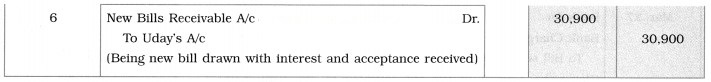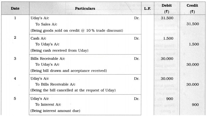 Uday purchased goods from Shankar on credit for ₹ 35,000 at 10 % trade discount. Uday paid ₹ 1,500 immediately and for the balance accepted a bill for 3 months. Before due date Uday approached Shankar with a request to renew the bill. Shankar agreed but with condition that Uday should accept a new bill for 3 months including interest at 12% p.a.