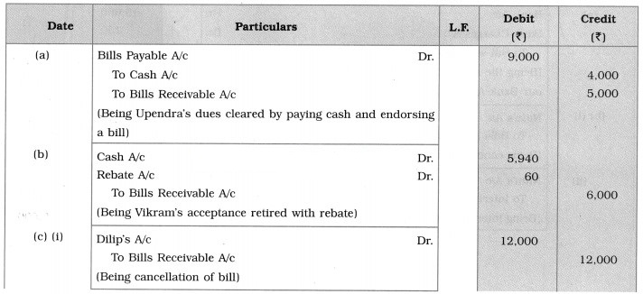 (a) Narendra retires his acceptance to Upendra by paying ₹ 4,000 in cash and endorsing a bill accepted by Ramlal for ₹ 5,000.