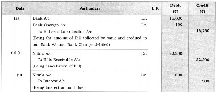 (a) Bank informed that Amit’s acceptance for ₹ 15,750 sent to bank for collection was honoured and bank charges debited were ₹ 150.