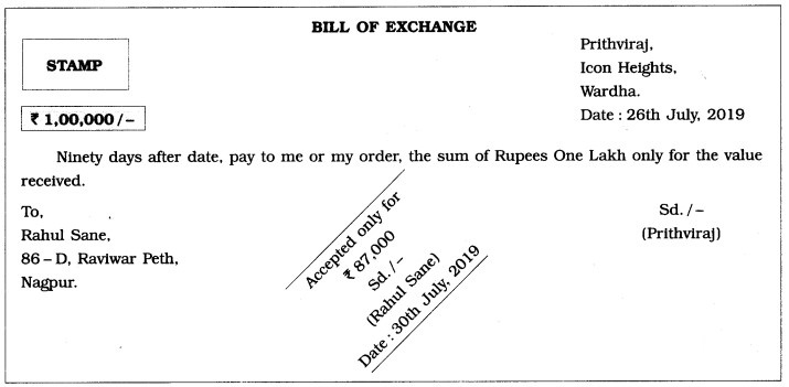 Rahul Sane, 86-D, Raviwar Peth, Nagpur accepted the bill drawn on him by Prithviraj, Icon Heights, Wardha for ₹ 87,000 on 30th July 2019.