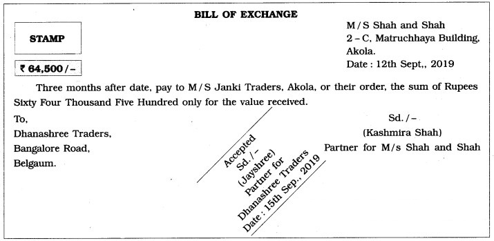 Kantilal, 343/D, Palm Heights, Jogeshwari, drew a bill on 10th Oct. 2019 for ₹ 63,490 for 45 days after the date on Shantilal, B2, Himalaya Towers, Baramati, payable to Priyanka, Satara. The bill was accepted on 13th Oct. 2019 for 60 days.