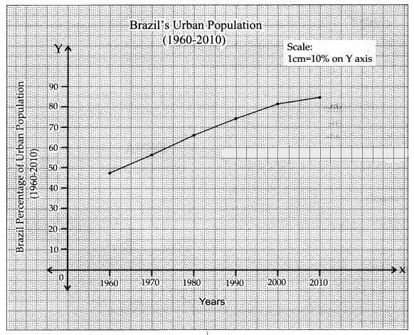 (vii) Brazil’s is rate of urbanisation has increased but in a diminishing rate.