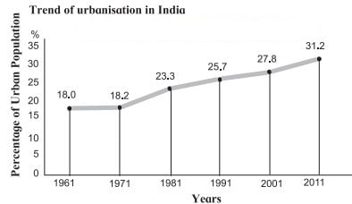 (vi) India’s rate of urbanisation has increased continously in a fluctuating rate.