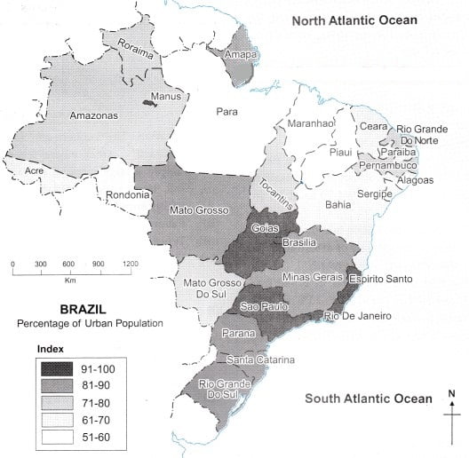 (ii) But urbanisation in Brazil is confined to South and South East.