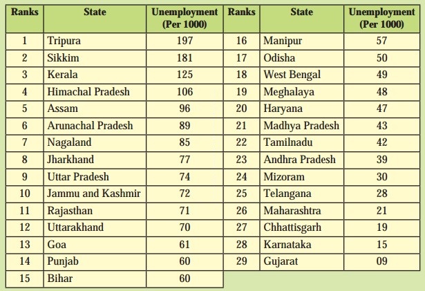 States with high rates of unemployment – Goa, Punjab, Maharashtra, Tripura.