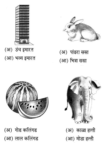 खालील चित्राला दोन-दोन विशेषणे लावा.