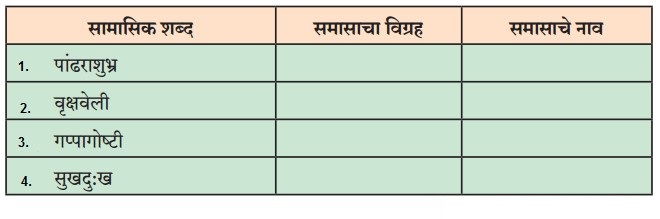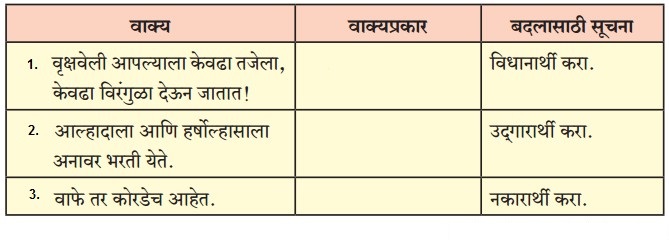 इ. खालील वाक्यांचा प्रकार ओळखून सूचनेप्रमाणे तक्ता पूर्ण करा.