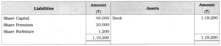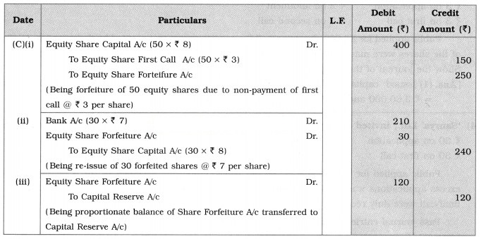∴ Balance of Share Forfeiture A/c = ₹ 150 – ₹ 30 = ₹ 120.