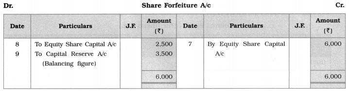 4. Amount transfer from Share Forfeiture A/c to Capital Reserve is ascertained by preparing Share Forfeiture A/c.