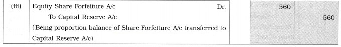 So, balance of Share Forfeiture A/c = ₹ 960 – ₹ 400 = ₹ 560