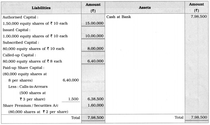 Paid-up Capital, Calls in Arrears, and Share Premium amount in the company balance sheet.