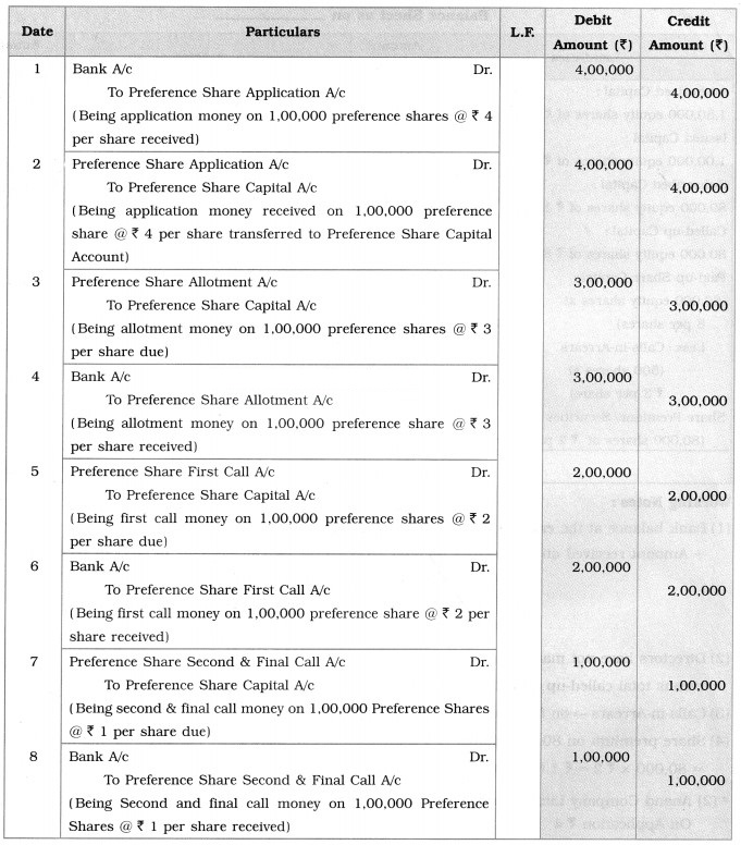 Anand Company Limited issued 1,00,000 preference shares of ₹ 10 each payable as-