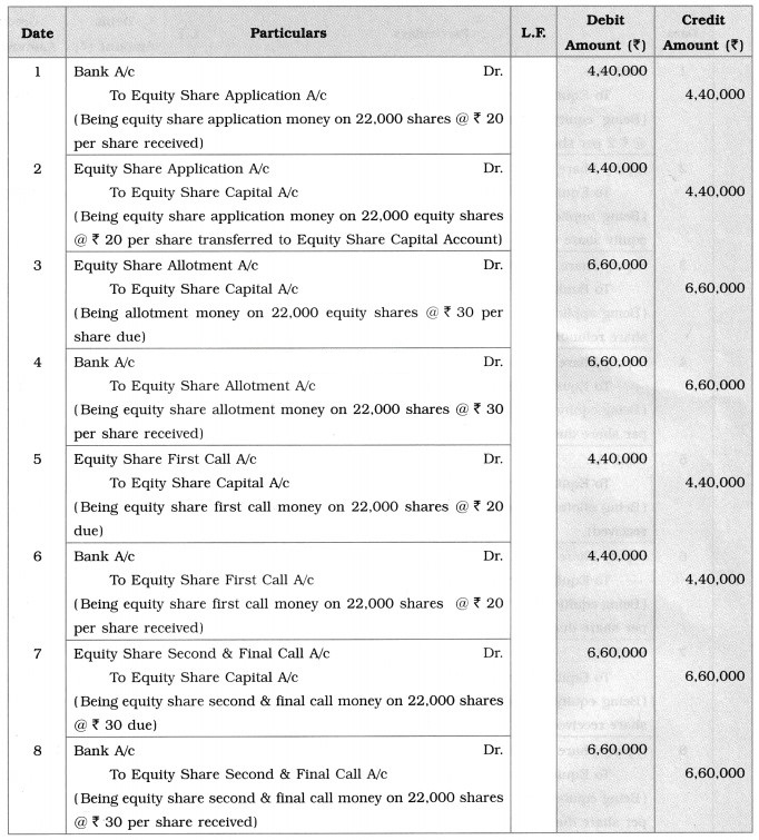 The application was received for 22,000 equity shares and allotment of shares was made to them. All money was received by the company.