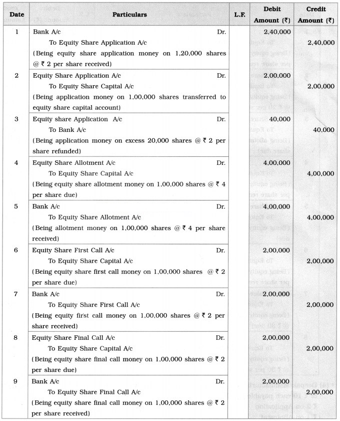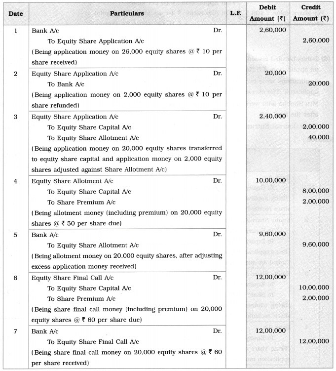 The application was received for 1,20,000 equity shares. The Directors decided to reject excess applications and refunded application money on that. The company received all money.