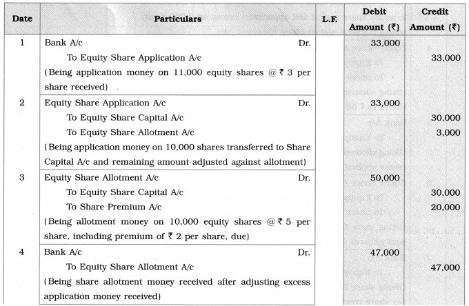 1. Excess amount received at the time of application ₹ 3,000 adjusted at allotment stage, so allotment amount received in the bank is ₹ 47,000.