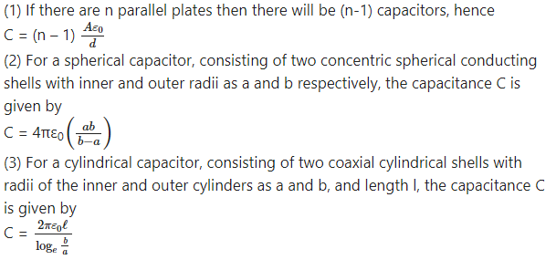 3. Parallel combination of capacitors is used when a large capacitance is required, i.e., a large charge is to be stored, at a small potential difference.