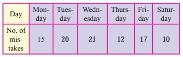 The following data gives a number of typing mistakes done by Radha during a week. Find the range of the data.