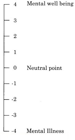 -1 to +1 indicates neutral charactristics while below 0 indicates disorders, dysfunction or illness. Life above zero covers a large area of positive aspects of behaviour such as mindfulness, resilience, happiness, hope, trust and empathy. It acknowledges elements of living that enrich and meaningfully sustain what is referred to as “the good life” in positive psychology.