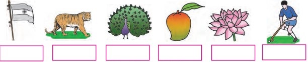 नीचे दिए गए राष्ट्रीय प्रतीकों के चित्र देखो और उनके नाम लिखो: