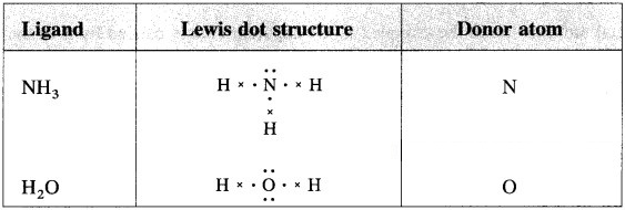 Bidentate ligand : This ligand has two donor atoms in the molecule or ion. For example, ethylenediamine, H2N – (CH2)2 – NH2.