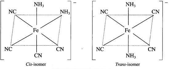 Draw structures of ci,c and trans isomers of [Fe(NH3)2(CN)4]