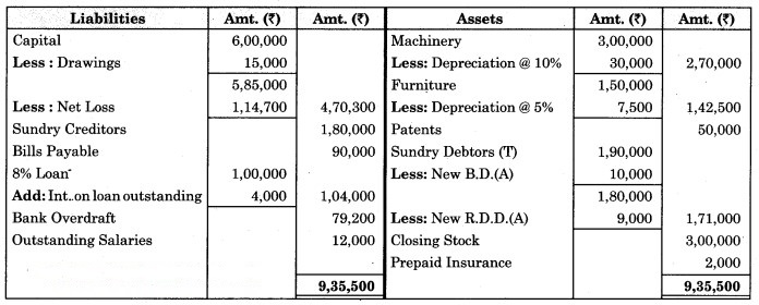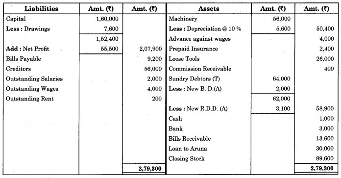 3. Depreciate Machinery by 10% p.a. and Loose Tools is valued at ₹ 1,00,000.