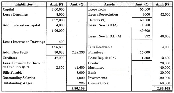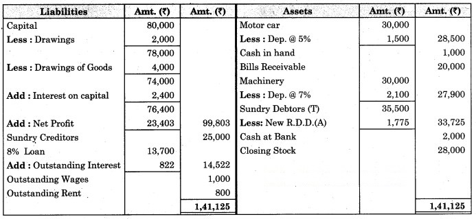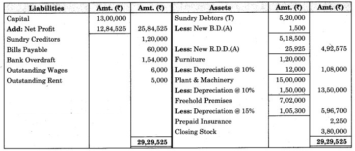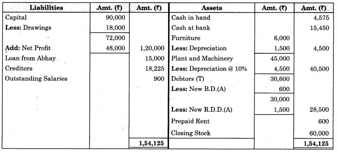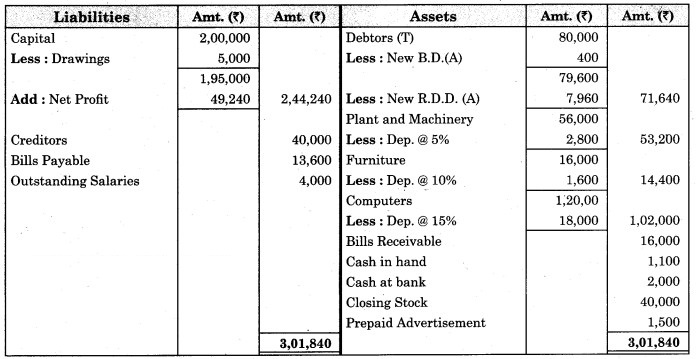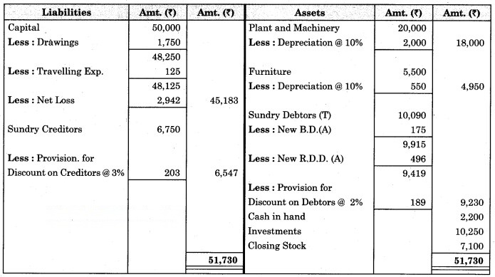 3. ₹ 175 is to be written off as bad debts which were due from Mr. Ashok, a debtor, and 5% R.D.D. is to be maintained on debtors.