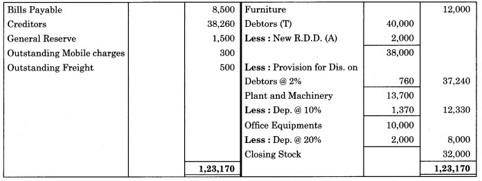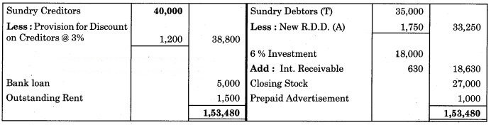 3. Provision for discount on debtors and Provision for discount on Creditors are to be created 2% and 3% respectively.