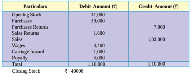 1. Closing stock is valued at ₹ 40,000 at Cost Price and ₹ 44,000 as Market Price.