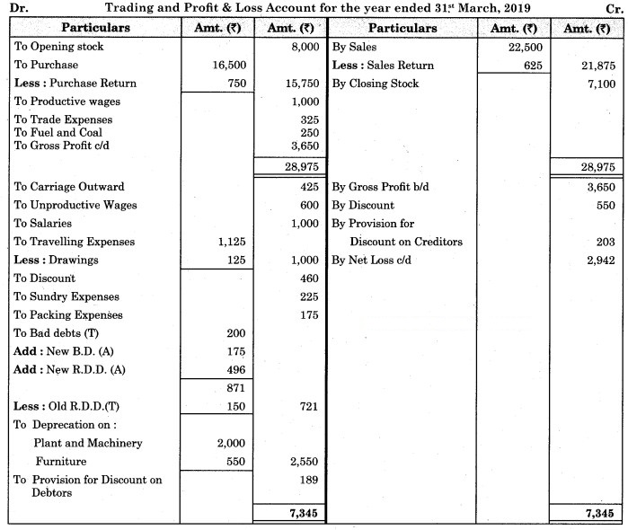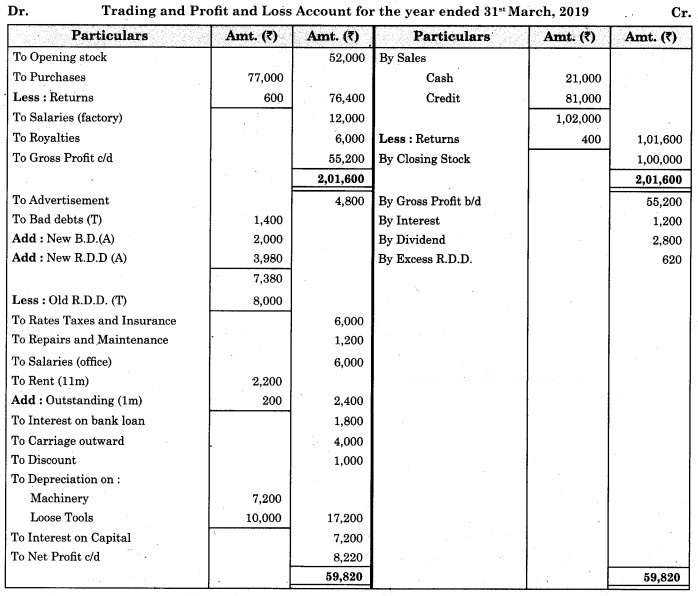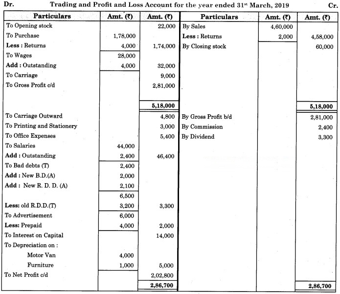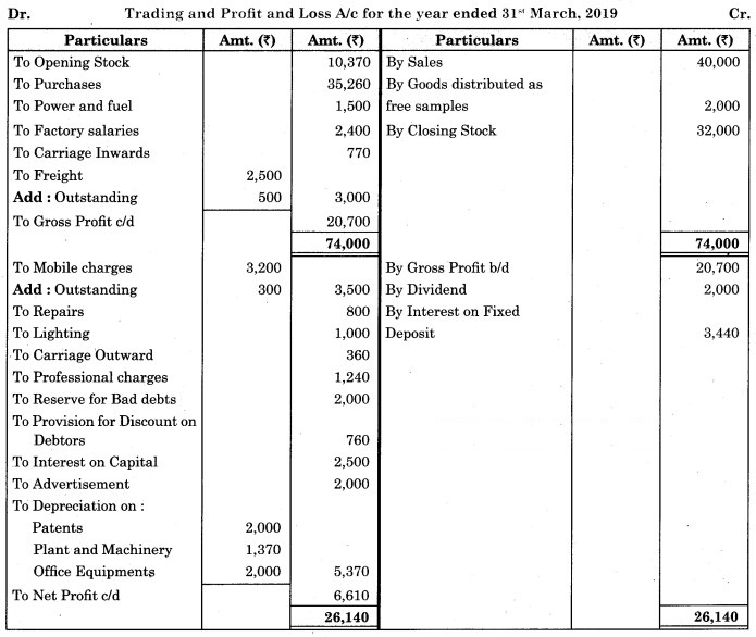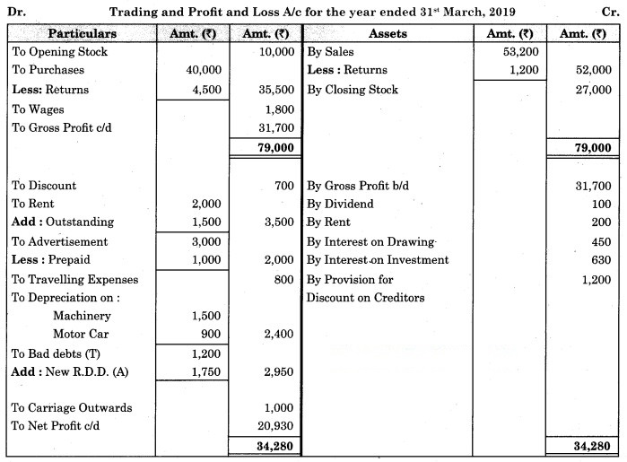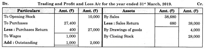 1. Stock on 31st March 2019 was valued at ₹ 28,000