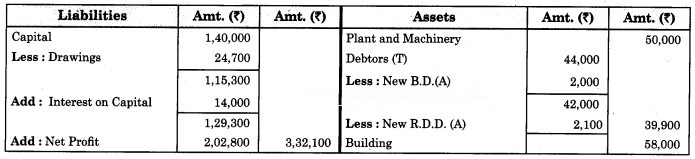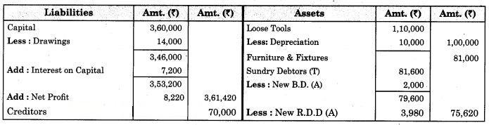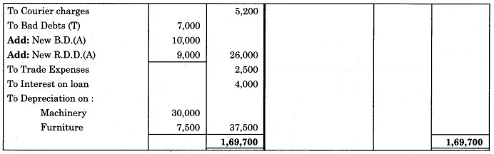 3. ₹ 175 is to be written off as bad debts which were due from Mr. Ashok, a debtor, and 5% R.D.D. is to be maintained on debtors.
