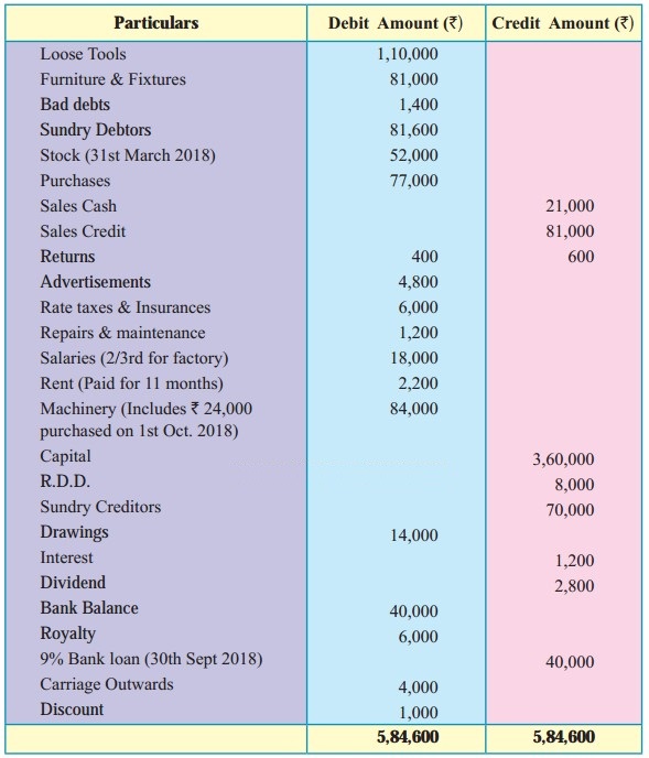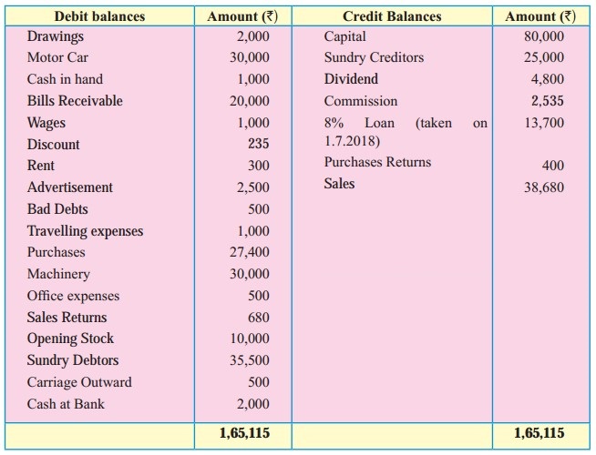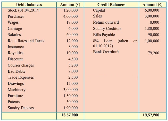 Trial Balance as of 31st March 2018