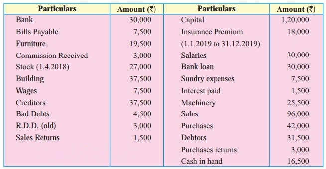 Trial Balance as of 31st March 2019.
