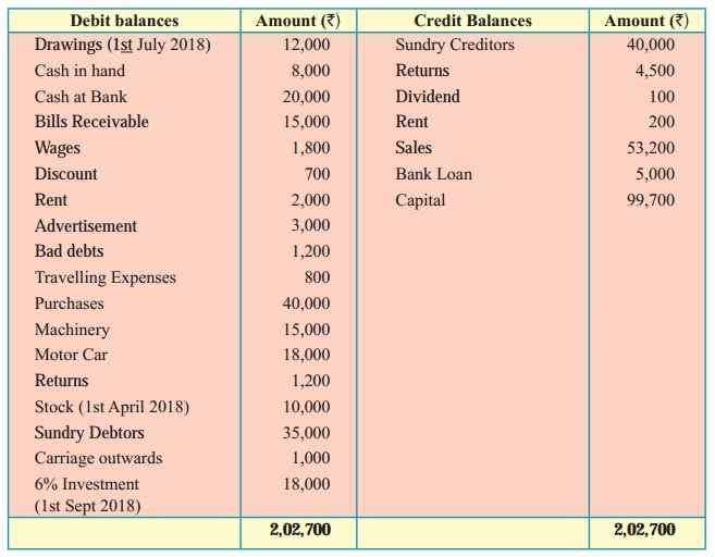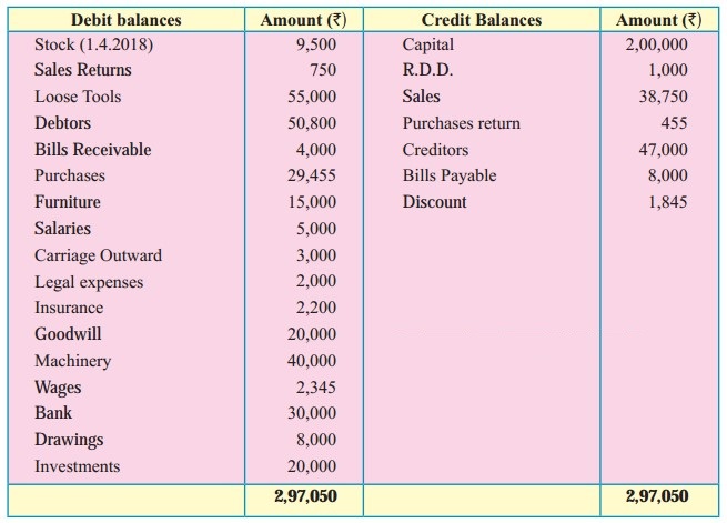 Trial Balance as of 31st March 2019