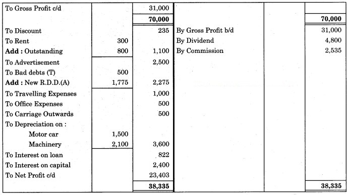 3. Reserve for bad debts is to be created 5% and discount on Debtors 2%.