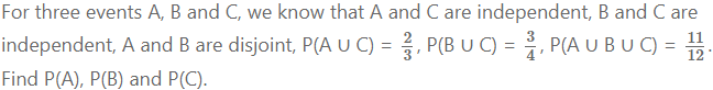 Let A and B be independent events with P(A) = 1/4 and P(A ∪ B) = 2P(B) – P(A). Find