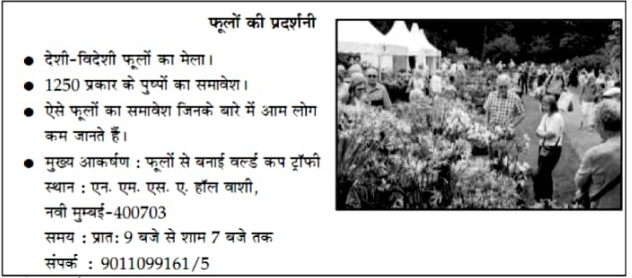 निम्नलिखित जानकारी के आधार पर लगभग 50 से 60 शब्दों में विज्ञापन तैयार कीजिए :