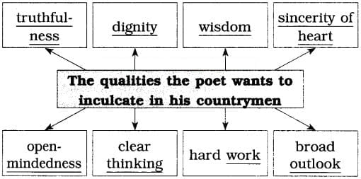 (e) What qualities does the poet wish to inculcate in his countrymen?
