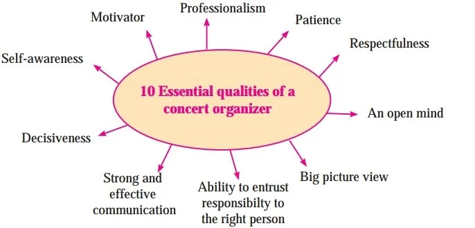 Look at the web diagram given below and study the traits of a good concert organizer.